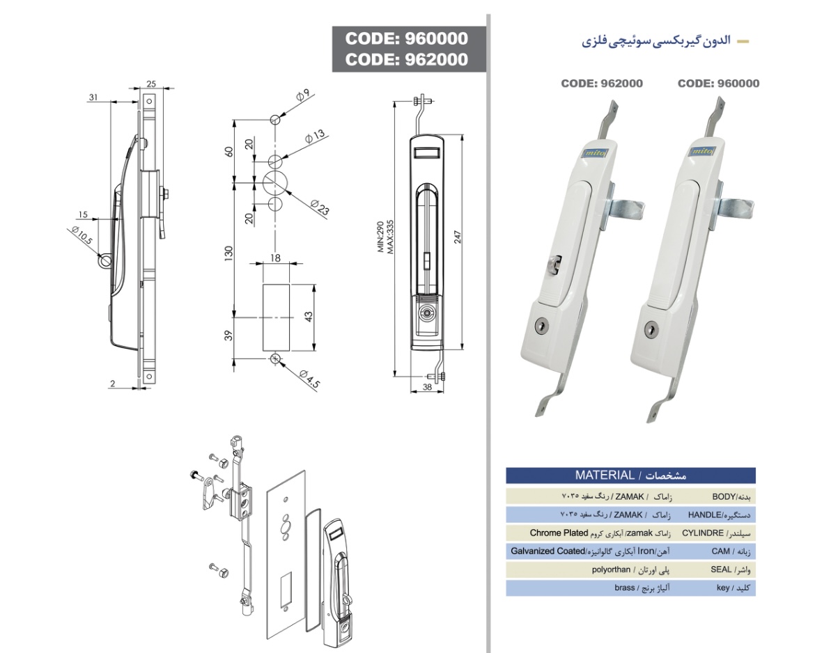 قفل عمودی تابلو تمام سربی 96000 الدون میتو